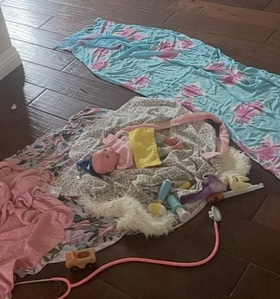 Then came the pandemic. We couldn’t visit the ocean, walk through the forest, or explore the farm. Then I realized we could bring those places to life at home. We spread out a green cloth for grass, a blue cloth for the ocean, a sandy beige for the desert, and a brown for the forest floor. With a few animals and some imagination, entire lands came alive. Suddenly, our living room became a whole world of play.